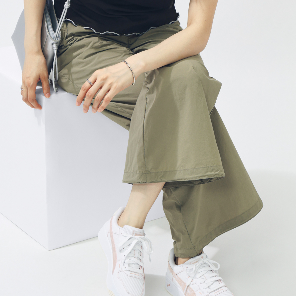 SUMMER PACKコレクションから、ナイロンタッサー素材を使用したウーブンワイドパンツ。