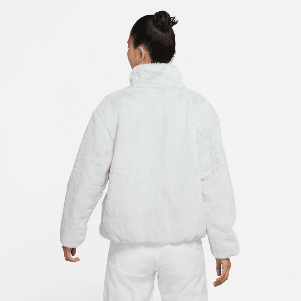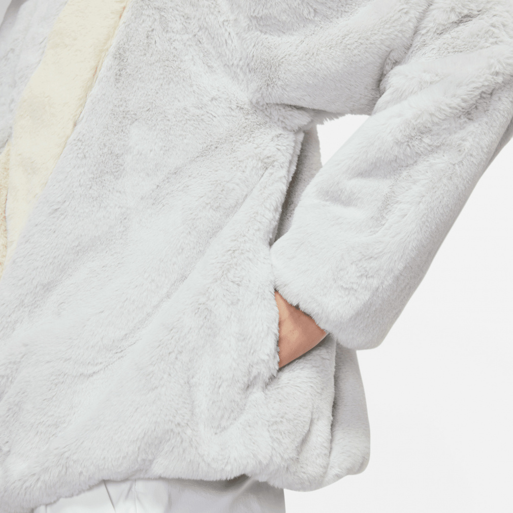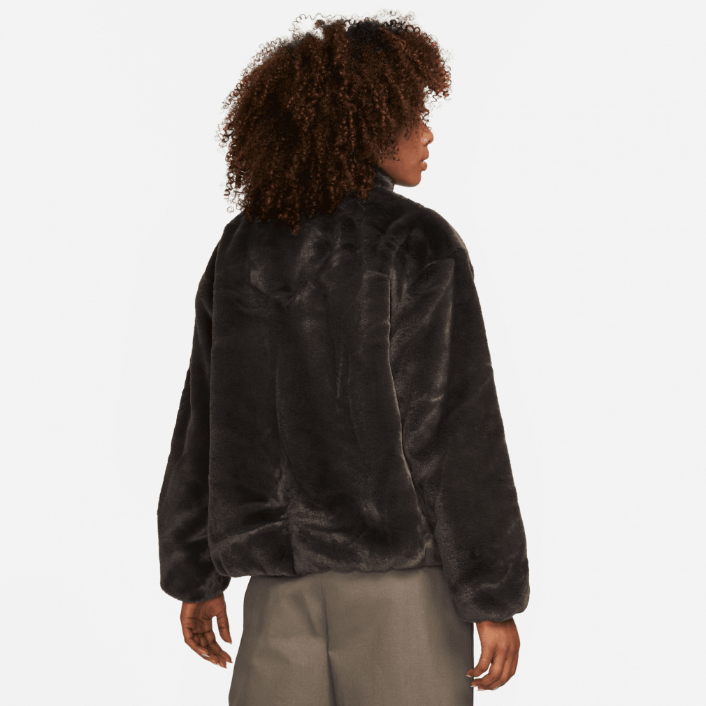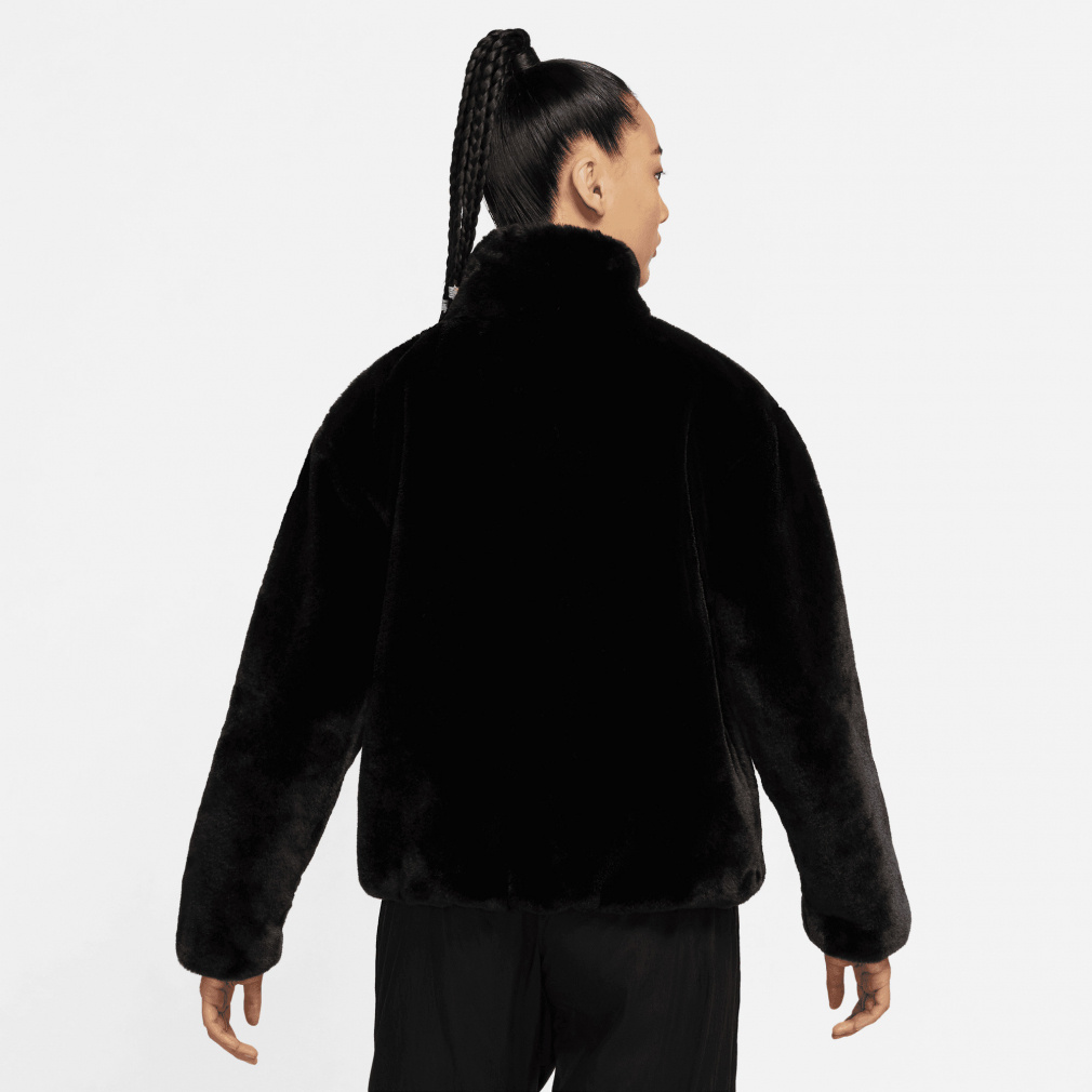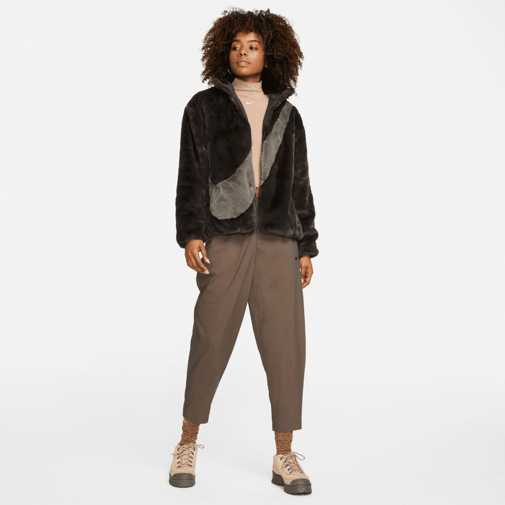 ◇暖かいフェイクファージャケットに、存在感のある大きめのスウッシュロゴをプラス。