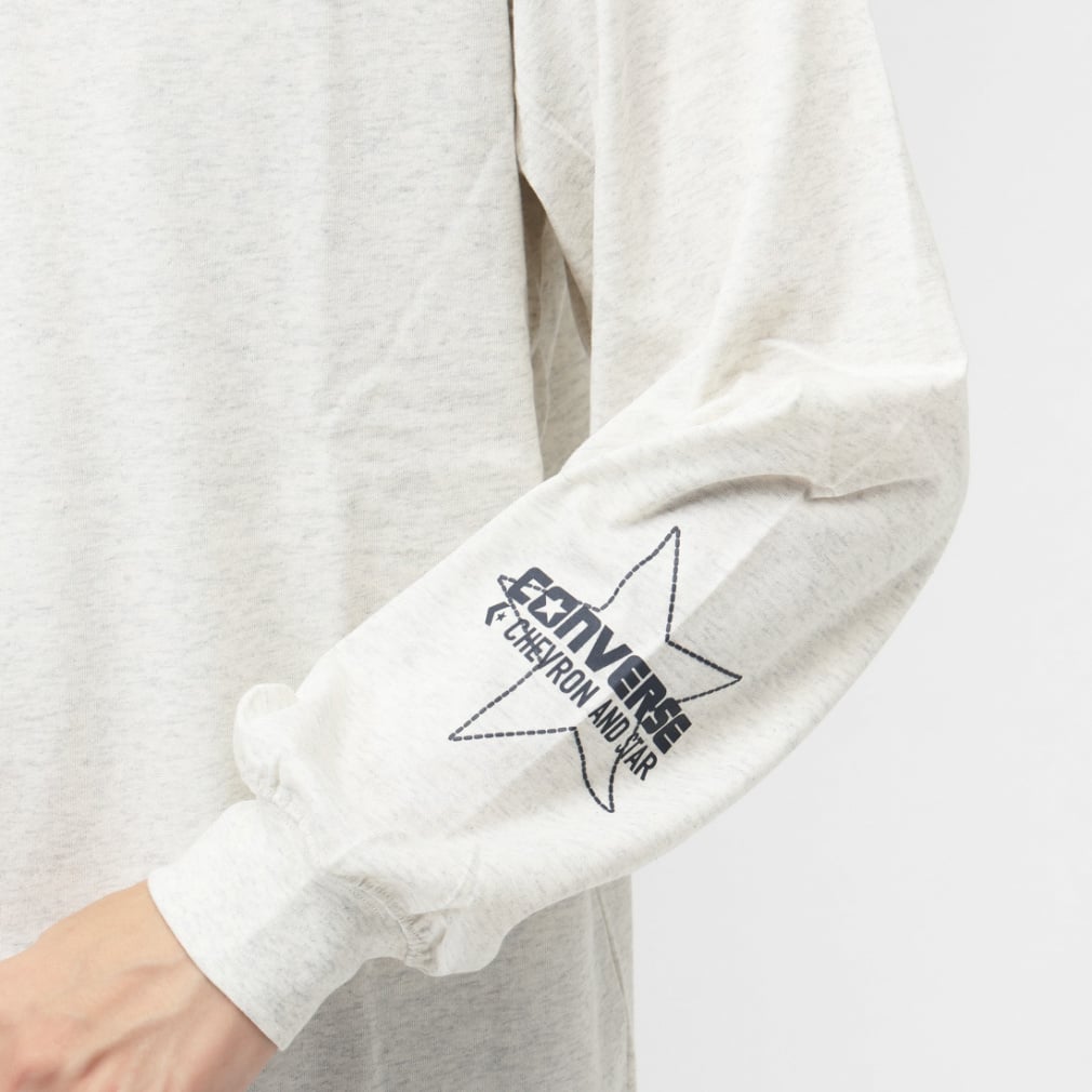 少しゆったりしたシルエットで袖口にはコンバースらしく星をアレンジしたデザインをプリント。