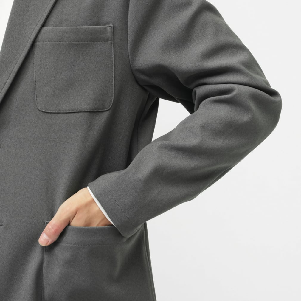 定番のイージーシティジャケットを、全方向に伸縮するストレッチ性の高いジャージーニット素材で展開。