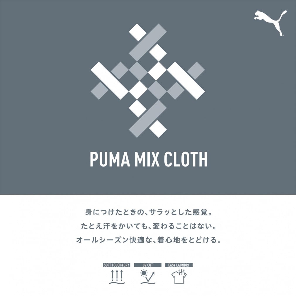 PUMA MIX CLOTH:ソフトな肌ざわりのコットン、吸水速乾性に優れたポリエステル、それぞれのメリットをミックスして、快適な着心地を叶える機能素材