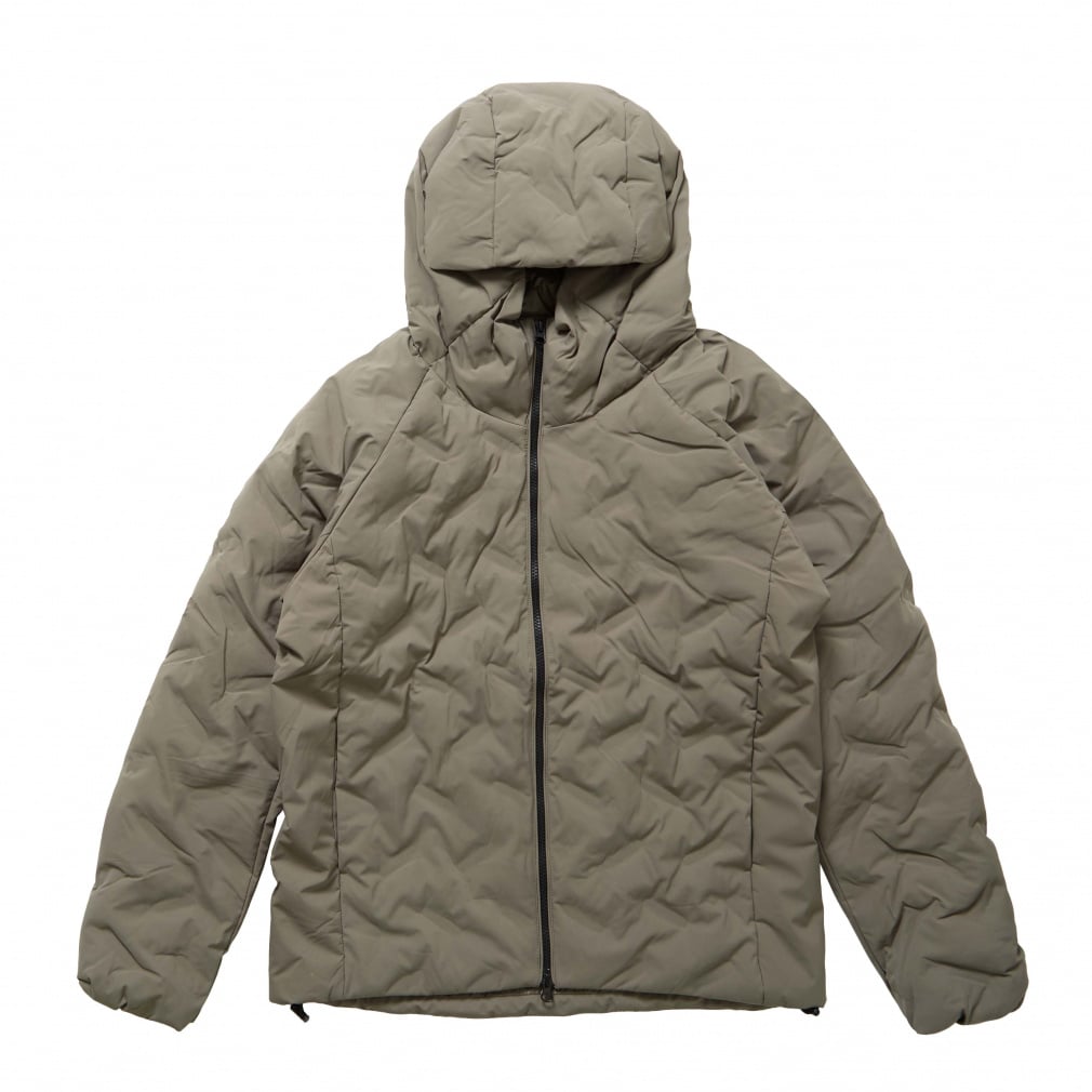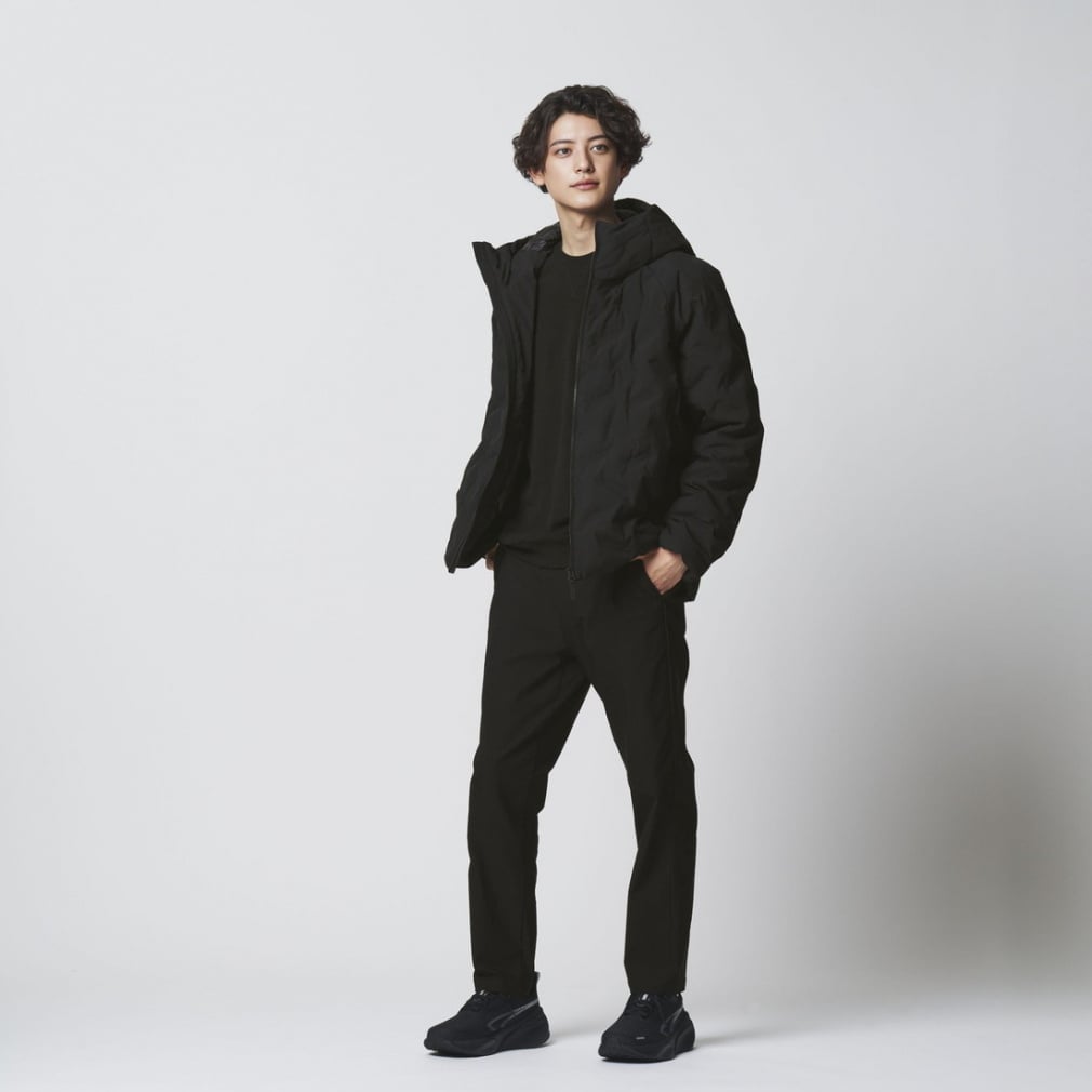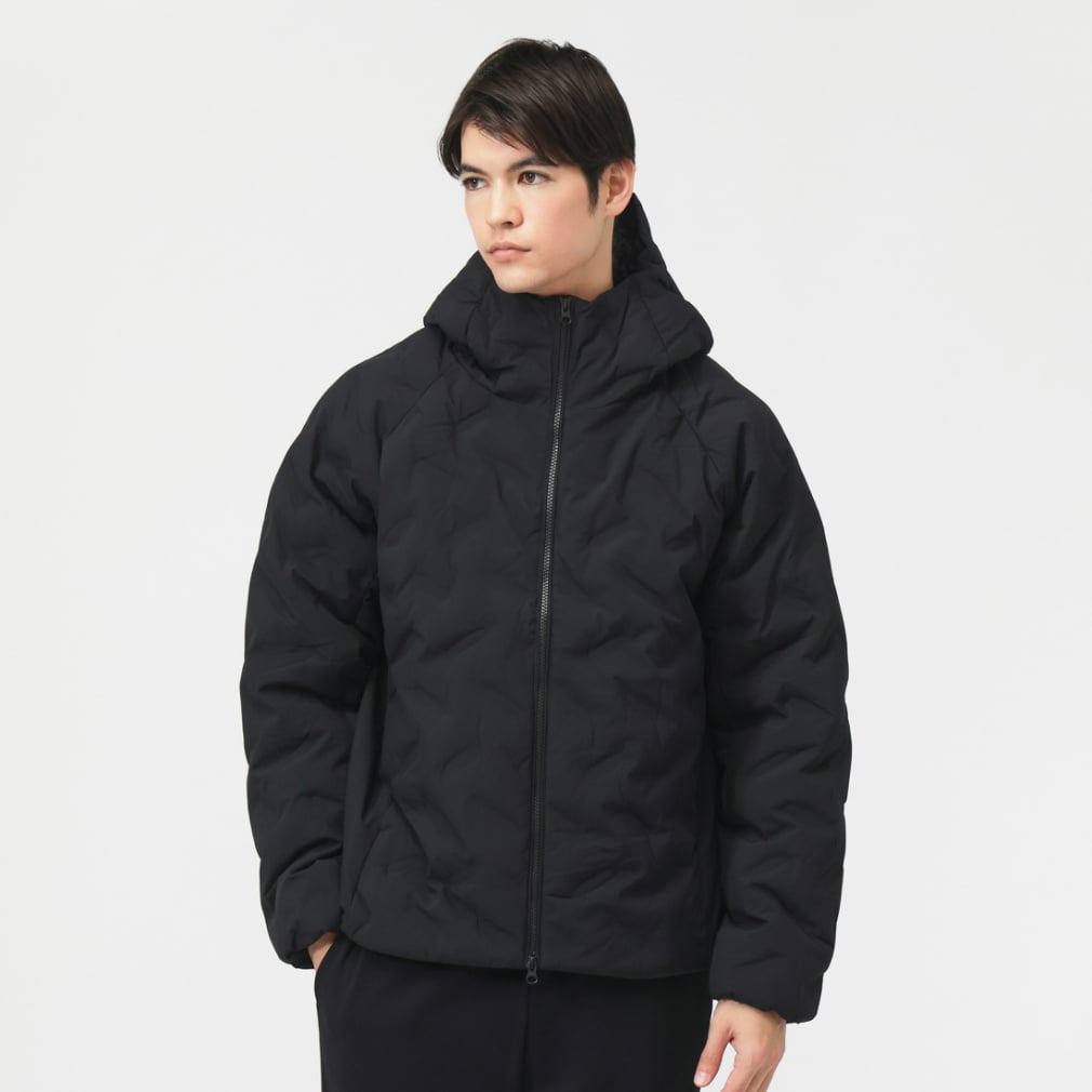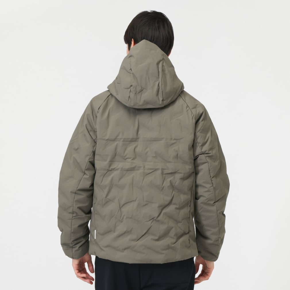一般的な中綿ジャケットと比べ高い保温力で暖かく、表素材は撥水加工をすることで、多少の雨や汚れにも強い。