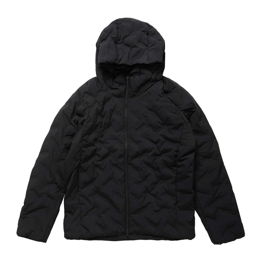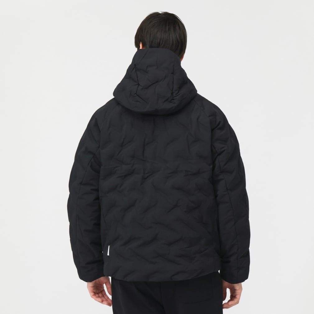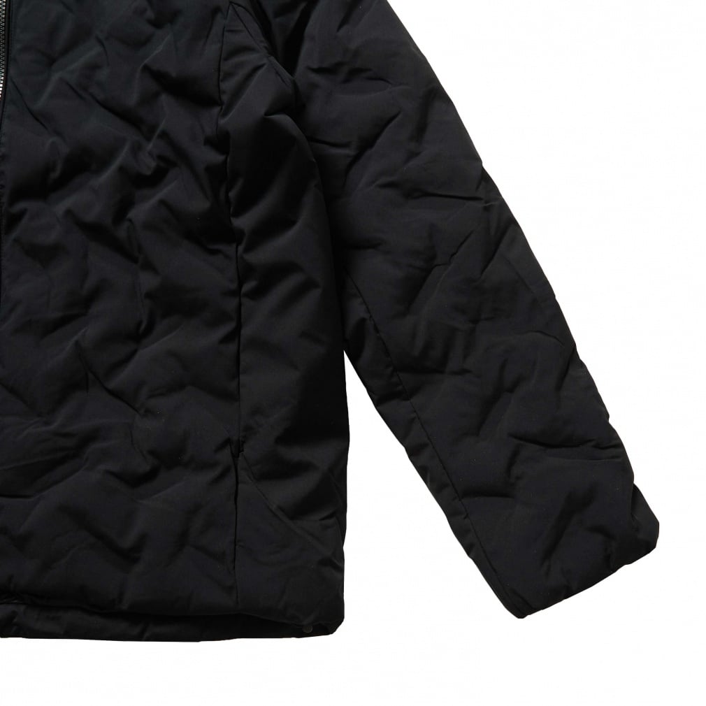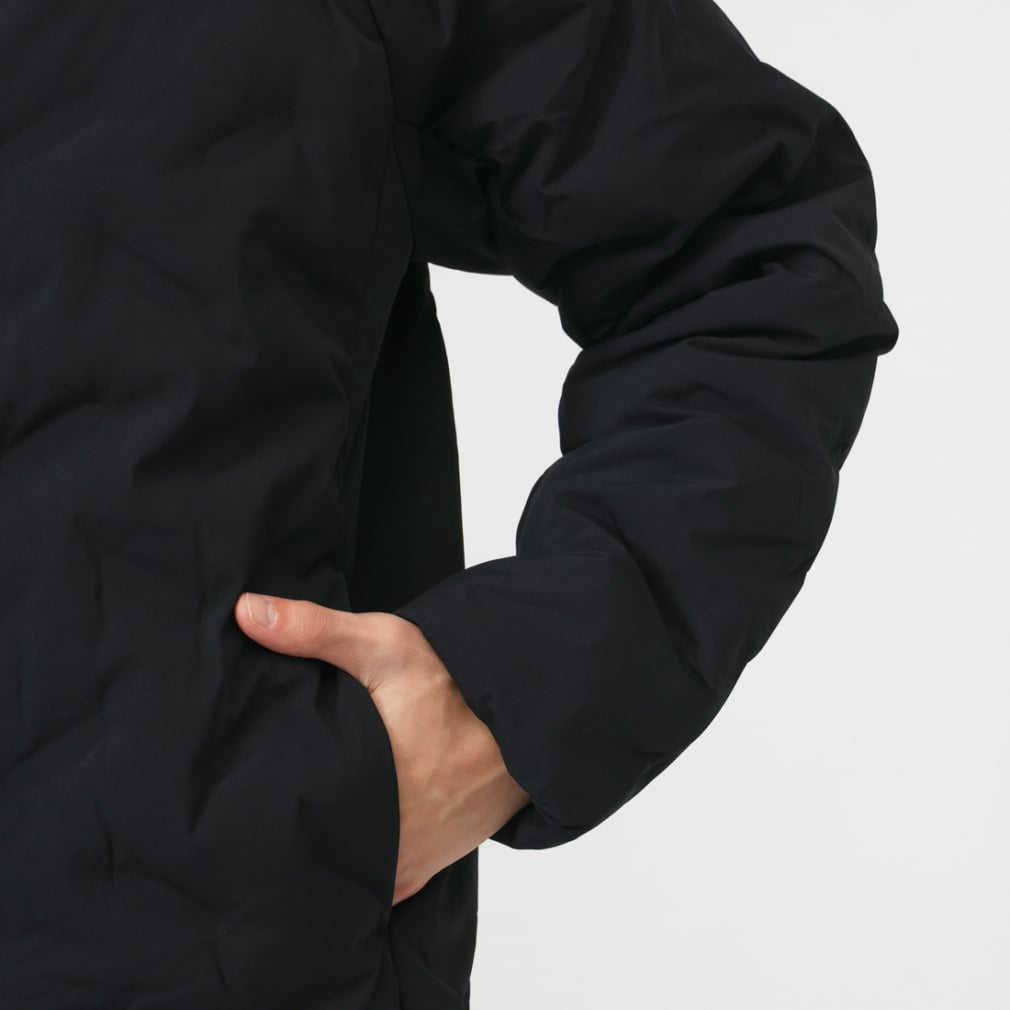 一般的な中綿ジャケットと比べ高い保温力で暖かく、表素材は撥水加工をすることで、多少の雨や汚れにも強い。