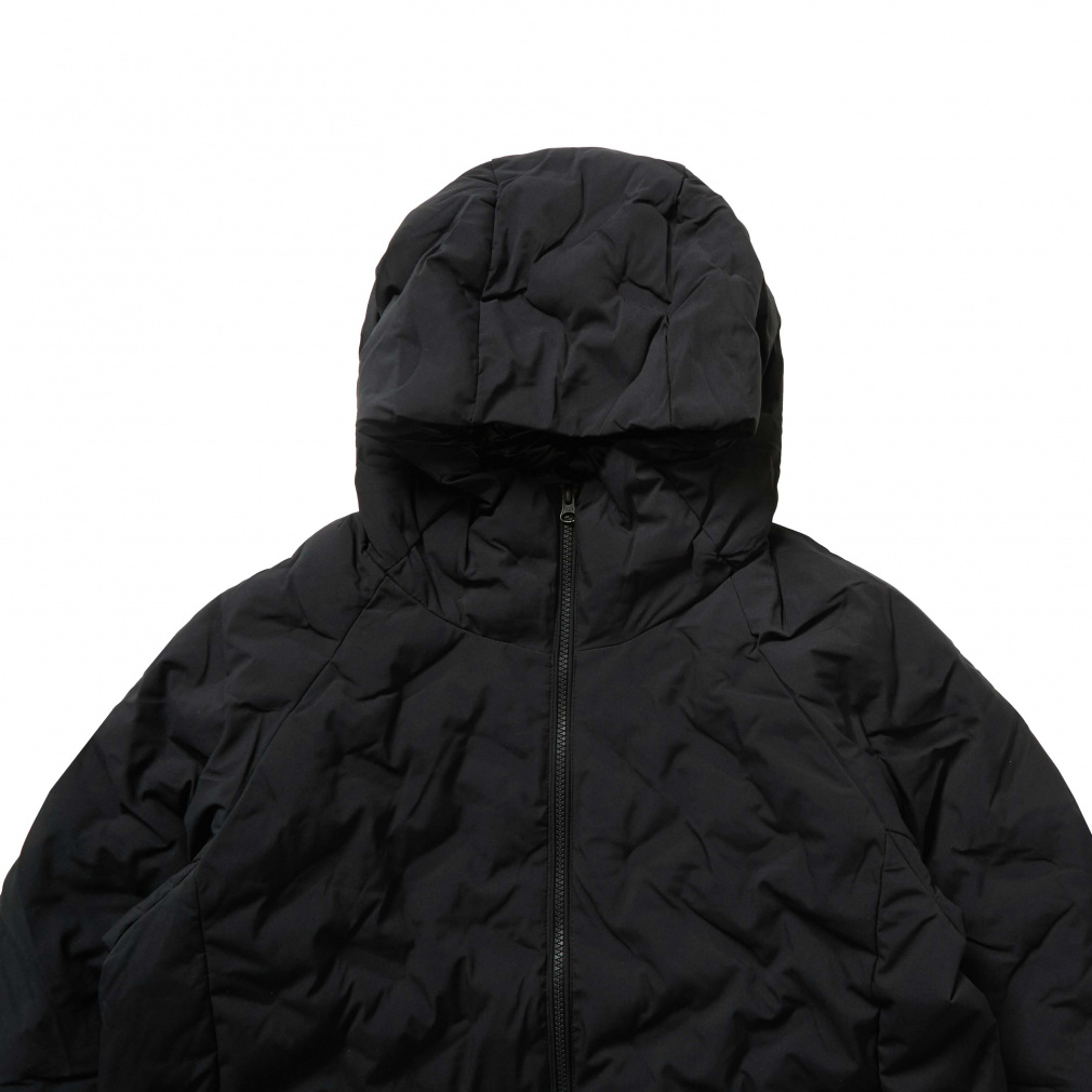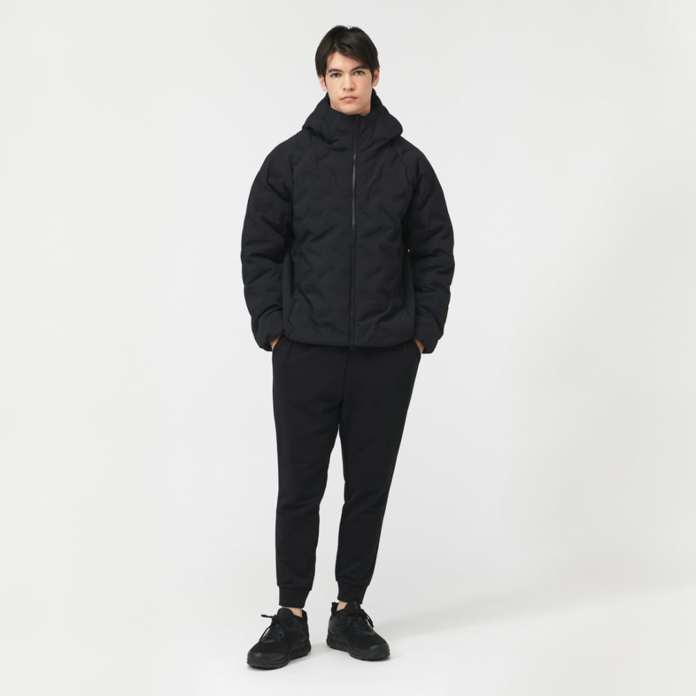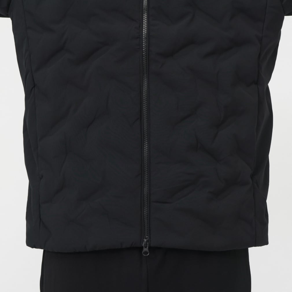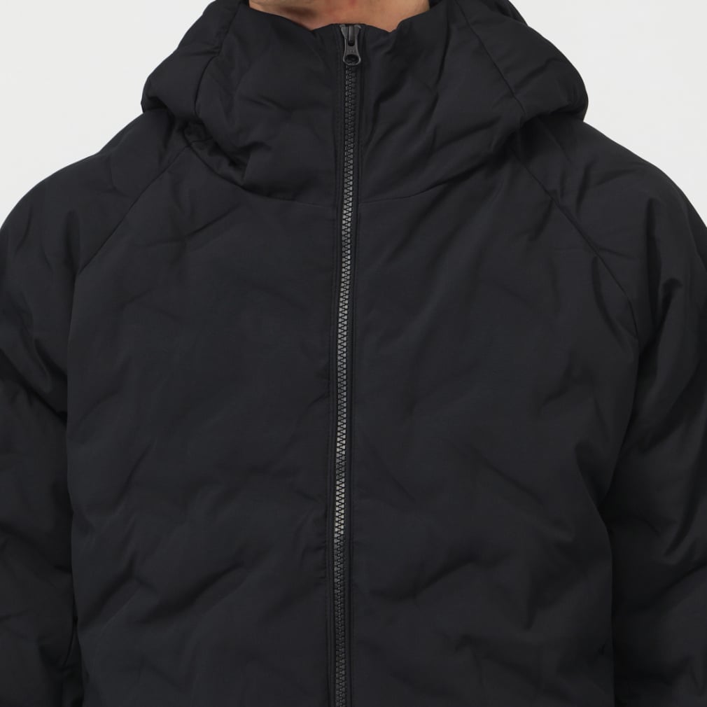 一般的な中綿ジャケットと比べ高い保温力で暖かく、表素材は撥水加工をすることで、多少の雨や汚れにも強い。