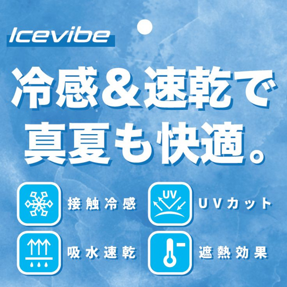 ◇Icevibeは、特別な紡績技術と繊維の特殊構造により、汗を素早く拡散させ、汗による不快感を取り除くテクノロジー素材です。