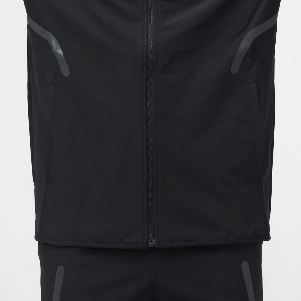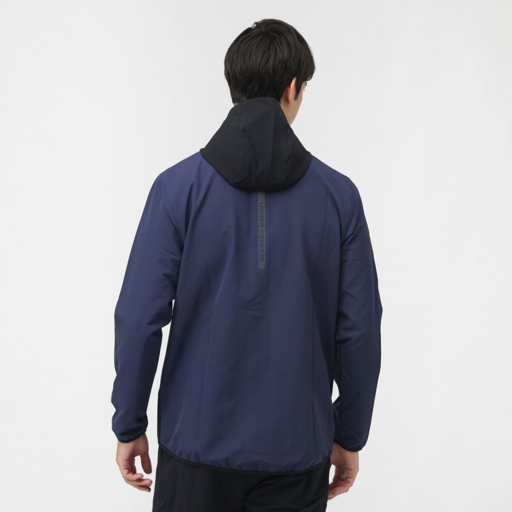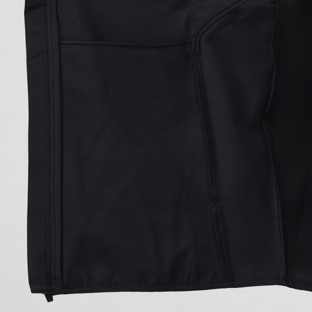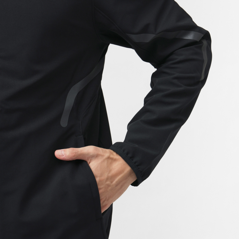 裏起毛の一枚ものウーブン素材が雨風から身体を守り、快適な着心地を提供する