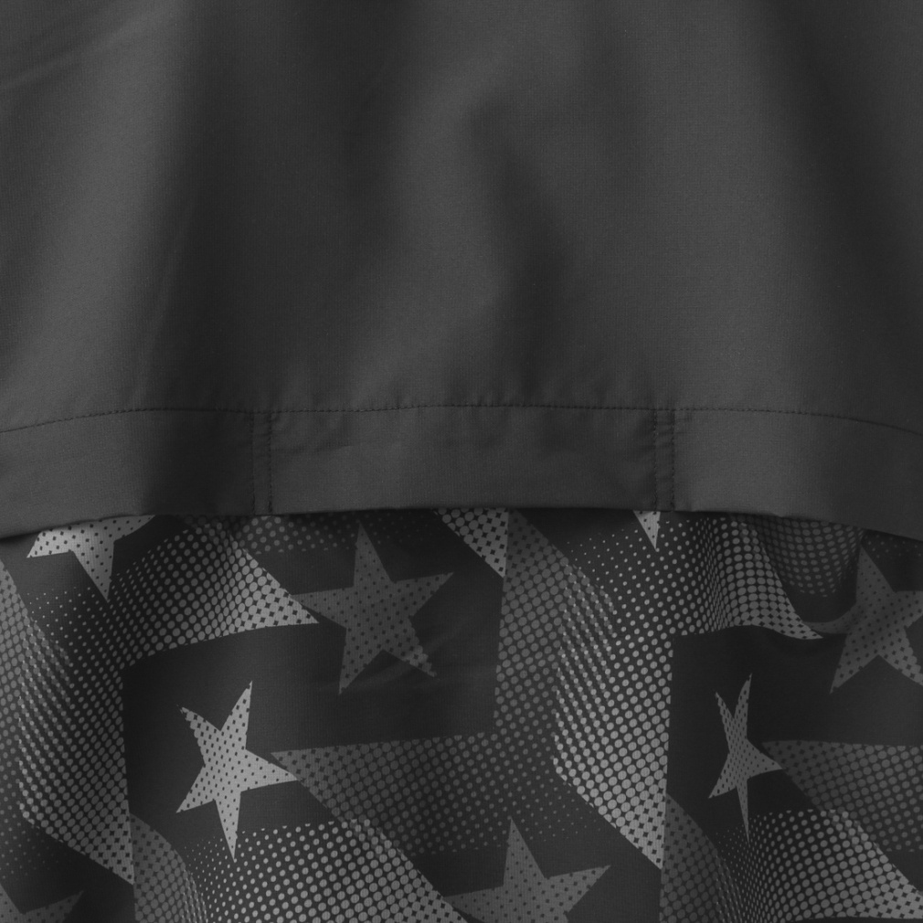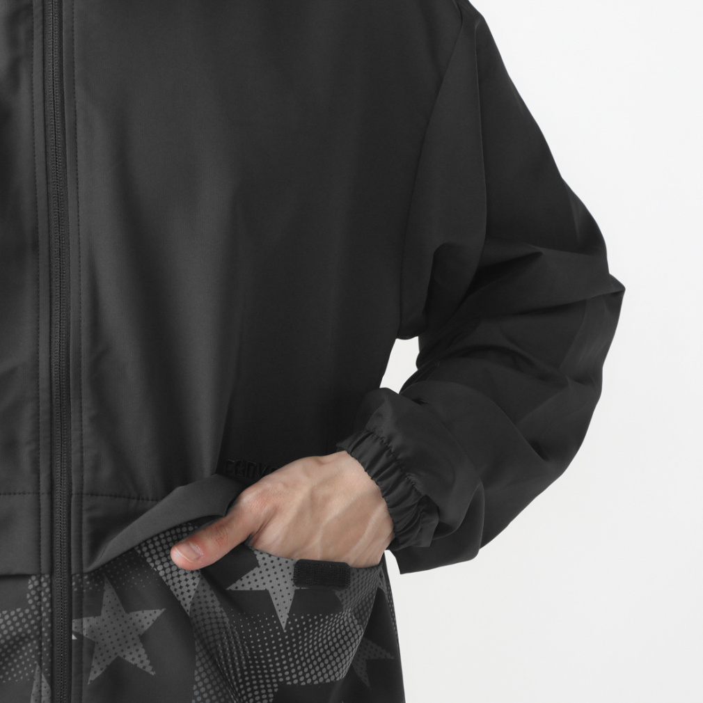◇シェブロンアンドスターロゴを活かしたシーズナルグラフィックで切り替えたウーブンジャケット