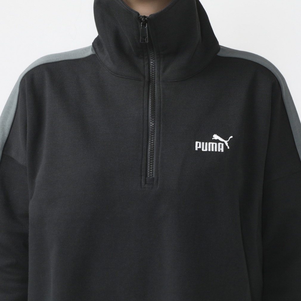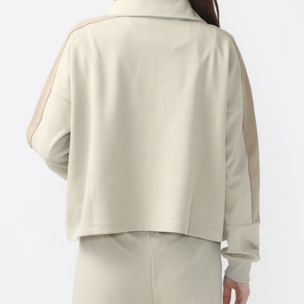 トレンドのハーフジップのデザインで、袖のラインがスポーティな印象に。