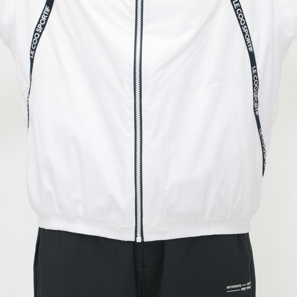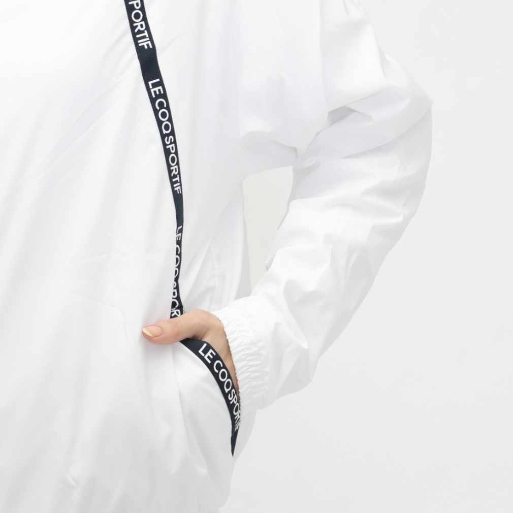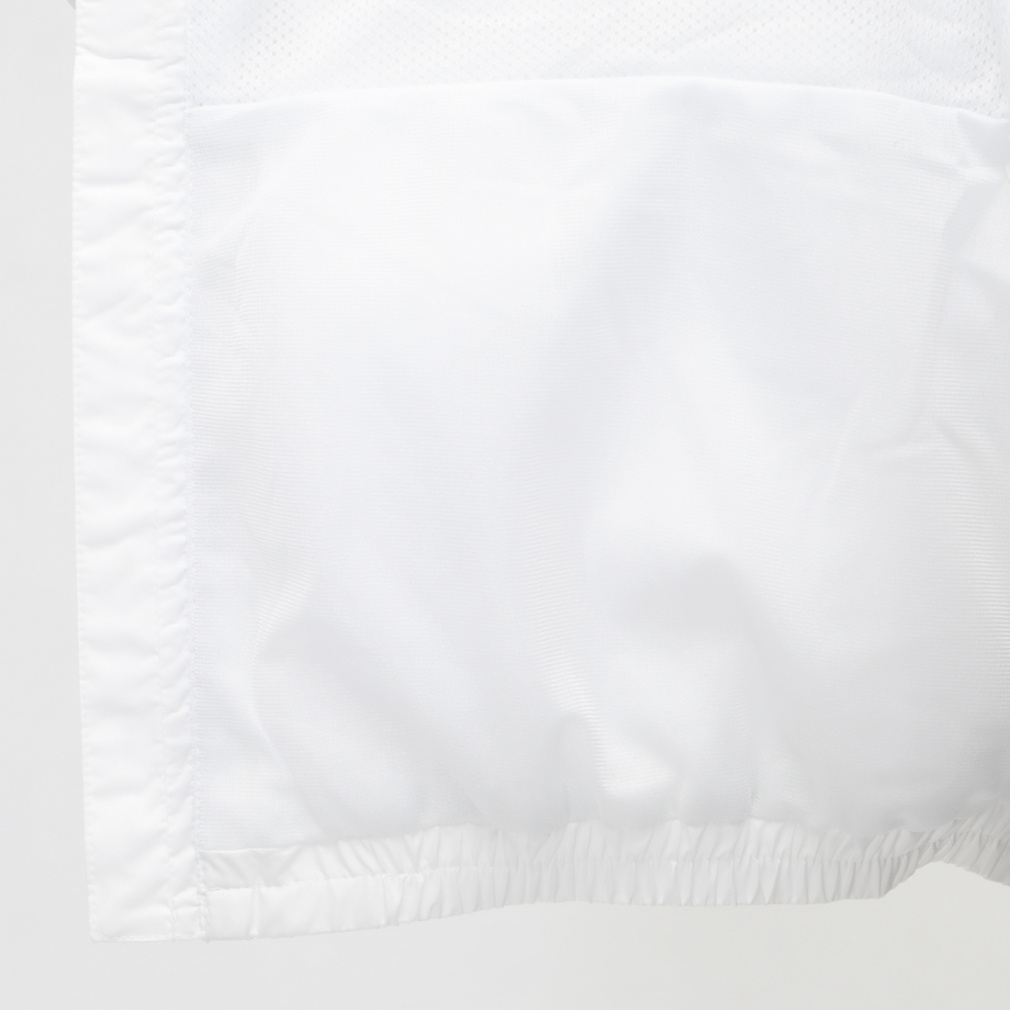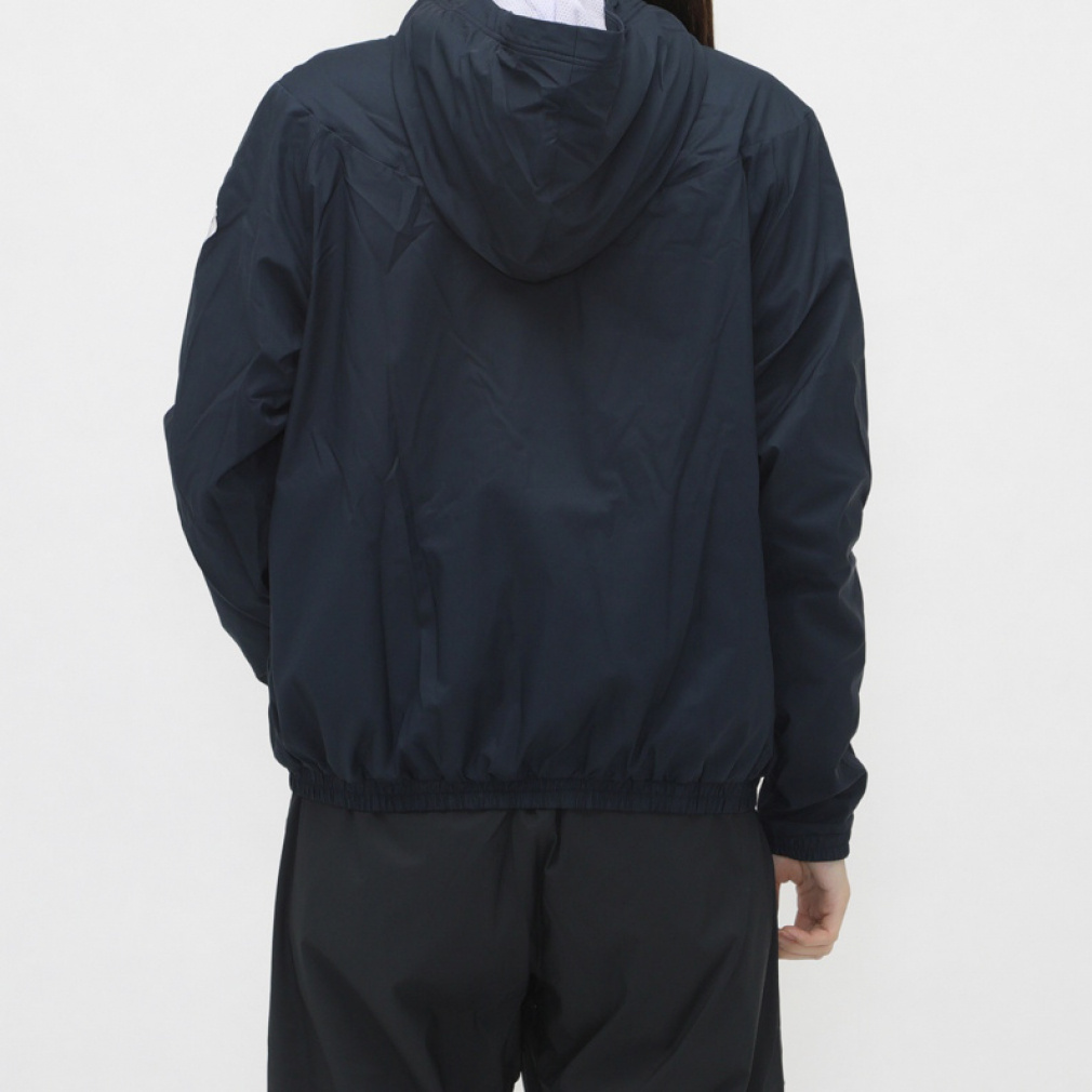 中空糸の裏地が秋冬のトレーニングシーンに活躍する 軽くて、暖かくて、動きやすい ウィンドブレーカーです。ベーシックなフルジップパーカータイプで、前身頃のロゴテープがスポーティーな印象を演出。裾と袖先にはゴムを入れており、冷たい空気の侵入を防いでくれます。