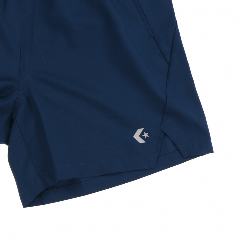 ◇吸汗速乾の機能を持つポリエステル素材のショートパンツ。ランニング用のポケットや、足上げのしやすいスポーティなカッティングを採用したデザインで、日常のスポーツシーンで活躍する一着です。
