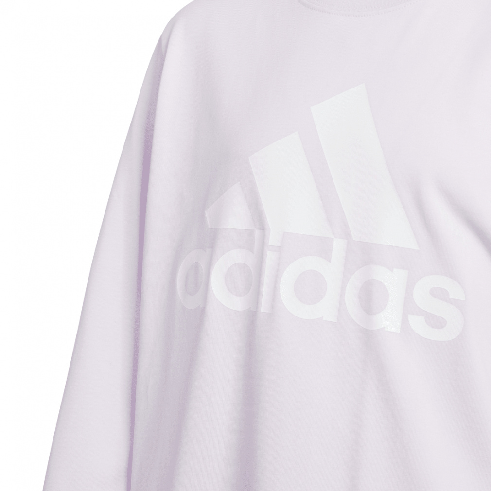 大きなアディダスロゴが目立つデザインは、ジーンズやジョガーパンツ、レギンス、ショートパンツなど、どんなボトムスとも好相性。