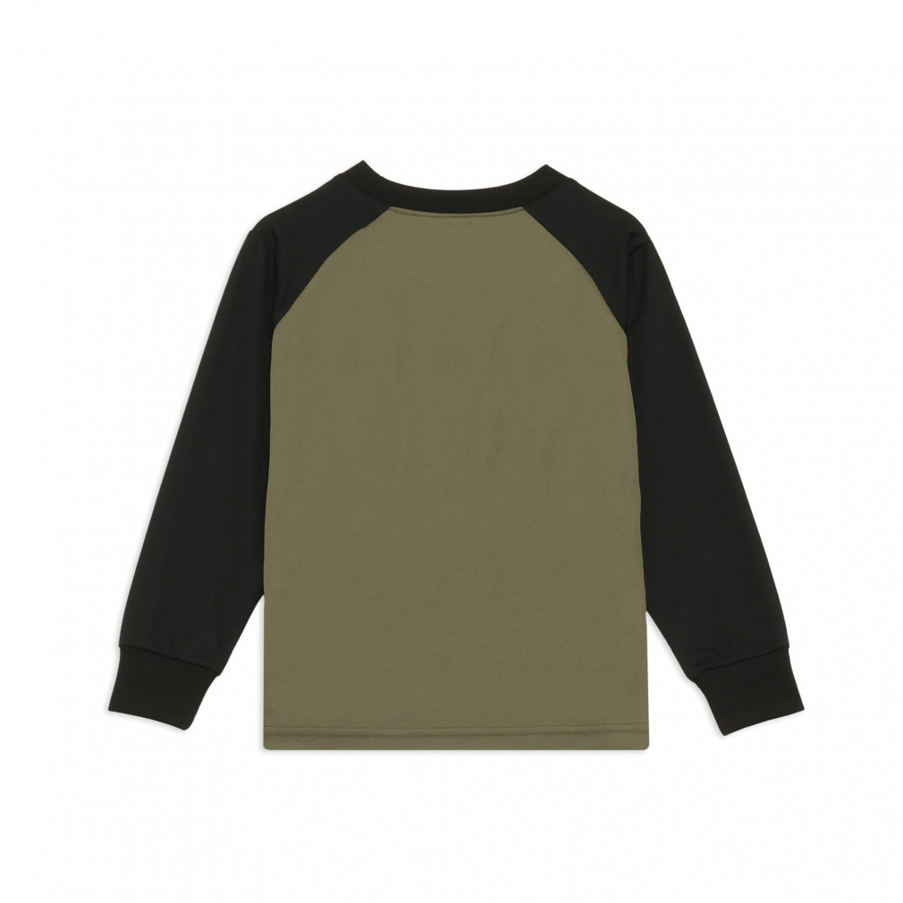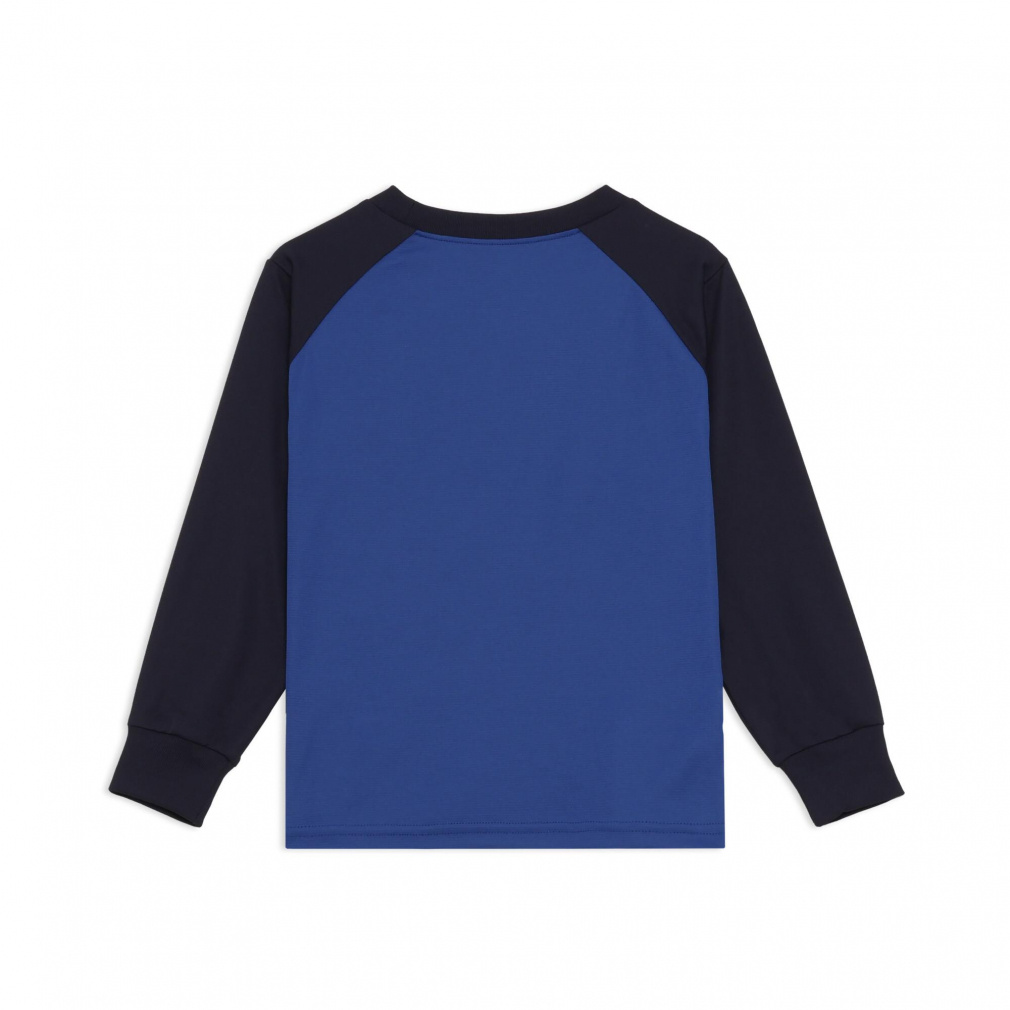 ラグランに見えるセットインのスリーブで、はっきりしたバイカラーがスポーティな印象のデザイン。