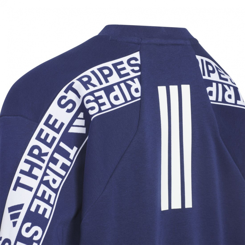 ◇「スリーストライプス」でadidasらしさを大胆に主張した、ルーズフィットのクルーネック。