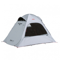 広々リビングルームで快適空間が保てるトンネル型 2ルームテントです。 前面、両サイドにメッシュが張り巡らされ、状況に応じてオープン面を変えれば解放感と風抜けが良く快適なリビング空間が保てます。 トンネル型の為、横風には若干の強度不足はありますが、 設営も簡単なのでデイキャンプなどの短時間設営、撤収が必要な状況でも活躍もします。 別売りキャノピーを購入しサイドを跳ね上げれば更に広い空間を作る事が出来ます。