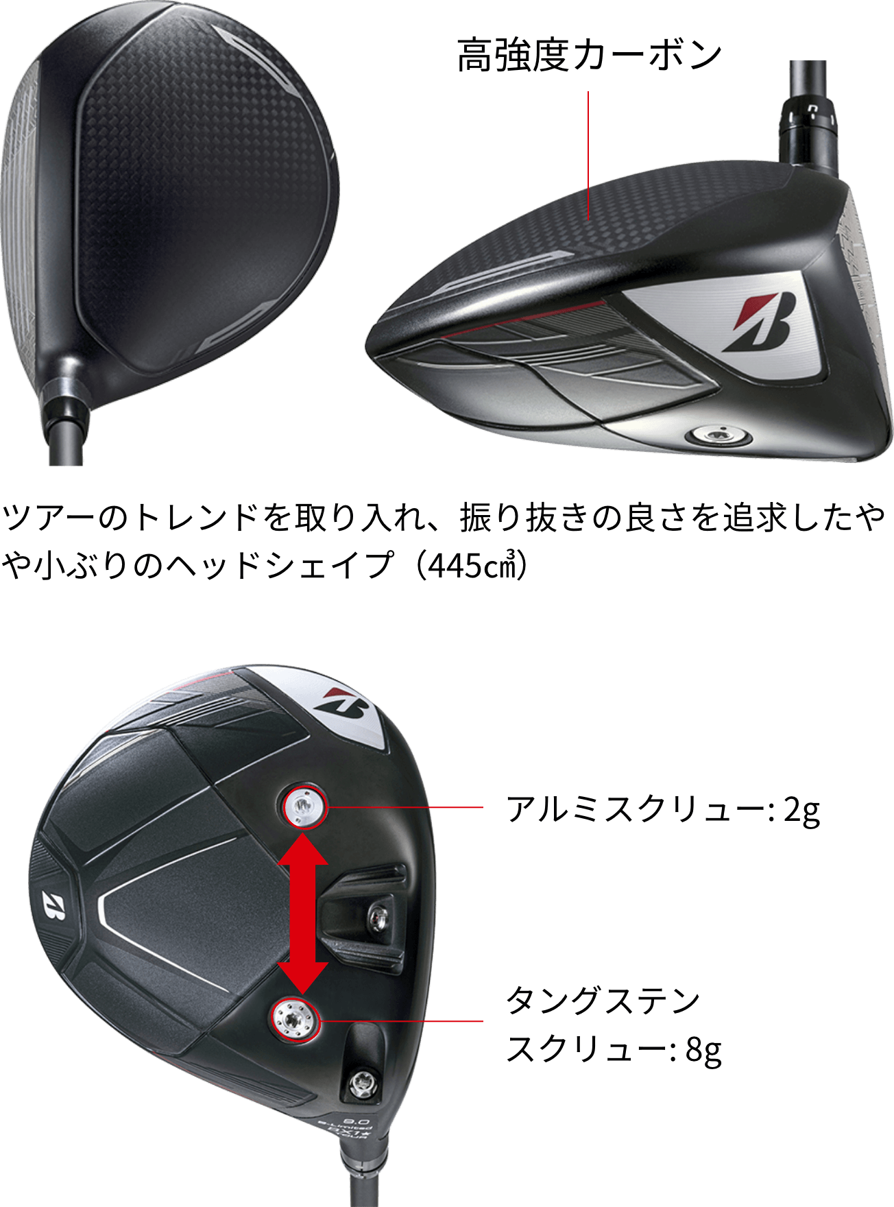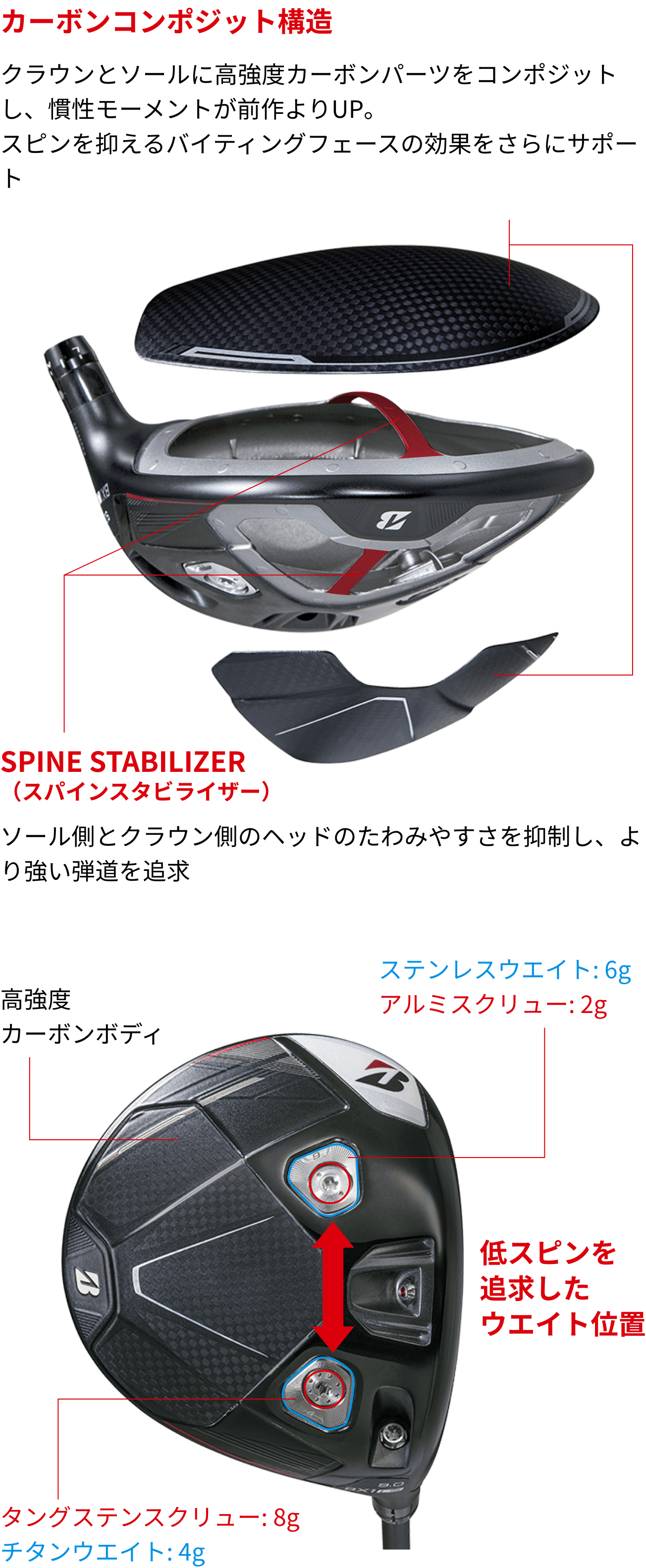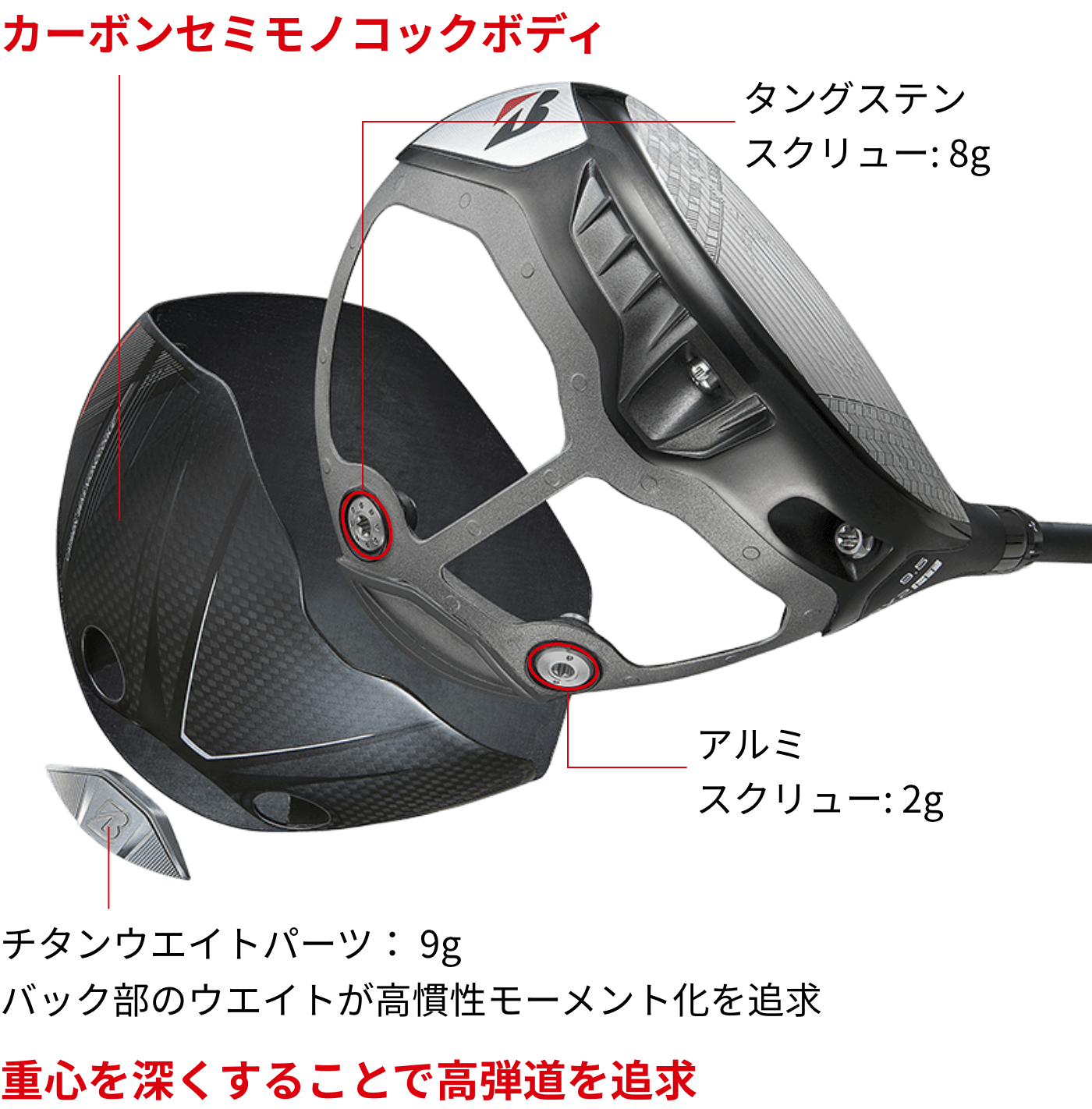 モデルごとに軽量化したい部分は独自のカーボンボディを採用し、飛距離効率を高める