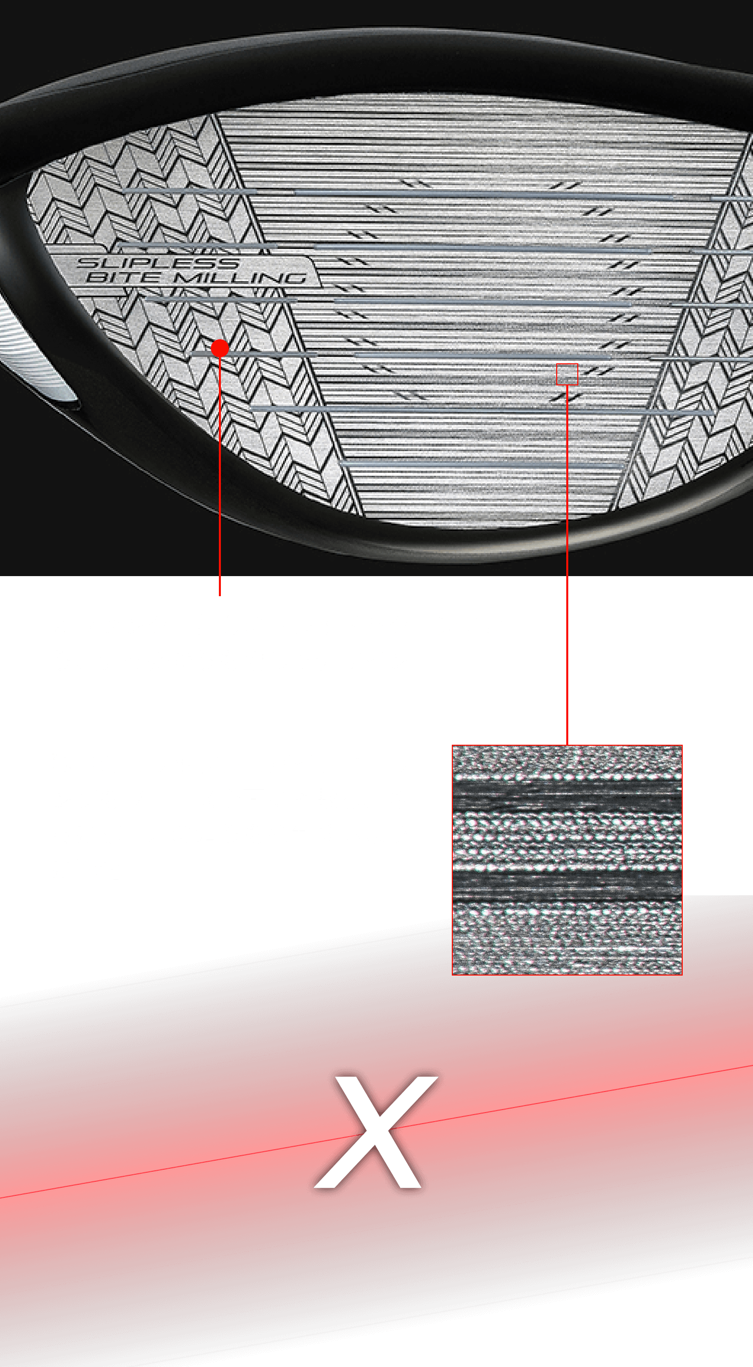 ボールの滑りを抑制する独自のスリップレスバイトミーリングをフェース全面に搭載し、さらに進化