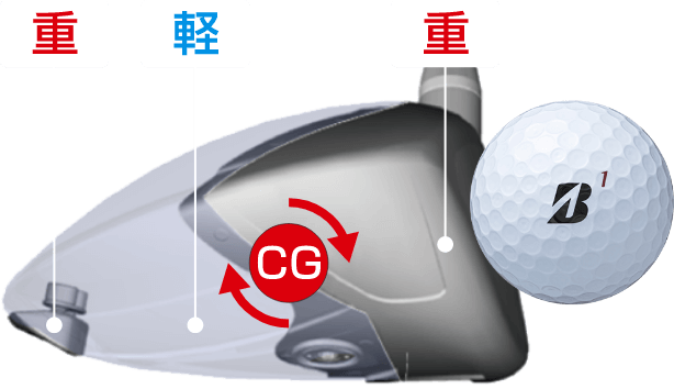 効果的に慣性モーメントを上げてインパクト時のヘッドの回転を抑制し、フェースミーリングの効果をさらに高める